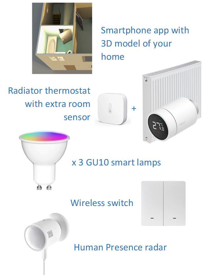 – Sonoff Thermostat (£30) or Aqara Thermostat (60£)